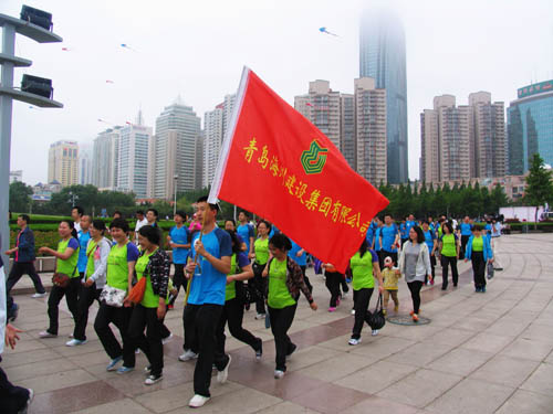 所有參與人員在五四廣場五月風下集合?;顒娱_始前,集團領(lǐng)導(dǎo)發(fā)表了講話,隨后大家從五四廣場出發(fā),沿木棧道向西步行,在第二海水浴場處領(lǐng)取中點牌后,經(jīng)東海飯店,由武昌路到達集團總部(終點),全程約5公里。在海川大旗的帶領(lǐng)下,大約一小時左右全部到達終點,并領(lǐng)取了獎品。