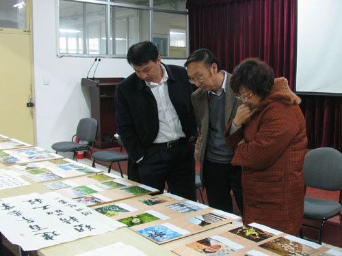 喜迎企業(yè)60年首屆書(shū)畫(huà)攝影展——專家評(píng)審組認(rèn)真審閱作品