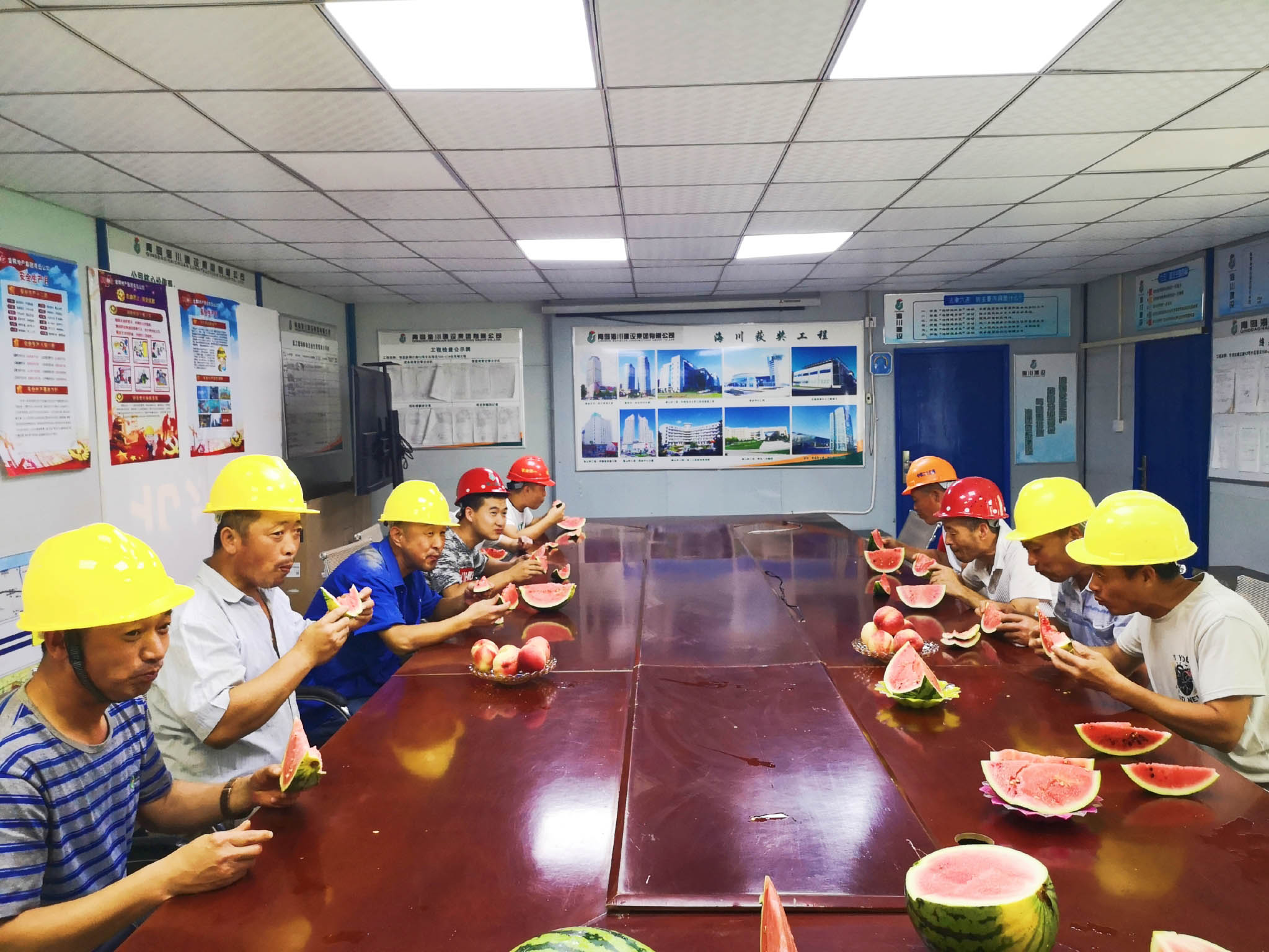 7月9日集團(tuán)工會(huì)走進(jìn)長(zhǎng)沙路人才公寓項(xiàng)目部、北澗社區(qū)安置區(qū)項(xiàng)目部、富爾瑪項(xiàng)目部、鎮(zhèn)江路12號(hào)片區(qū)項(xiàng)目部,為一線工人送去海川農(nóng)林生態(tài)園的西瓜、桃子等等解暑降溫慰問(wèn)品。